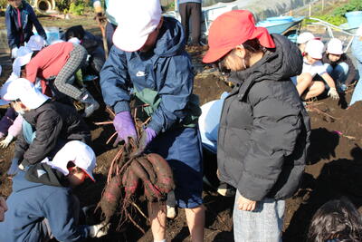 驚くような大きな大きなおいもがごろごろ収穫できました。
