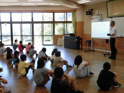 始業式では校長からそれぞれの目標に向かってなかよく楽しい毎日にしていきましょう。そのためにもみんなで「整理整頓・お片付け」を意識しましょうという話をしました。人の脳は図書館みたいなもので、昼の時間はいっぱい考えたり体験したりすることで、いろんな本を使ったり新しい本を作ったりする。夜はその使った本を寝ている間にきちんと片付けるということを話し、昼はいっぱい考えたりいっぱい挑戦したりして、夜はしっかりと寝ることが大事だというお話もしました。