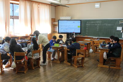 学校目標の一つ、「考える人」の育成のために、子どもたちが「問い」と「願い」をもち、自ら進んで学んでいく姿を目指して授業改善に取り組んでいます。