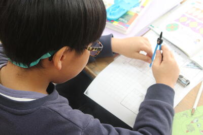 と隣で喜ぶ友だちのやり方は見ず、何とか自分で模様を完成させたいという強い願いで、粘り強く課題に向かっていました。