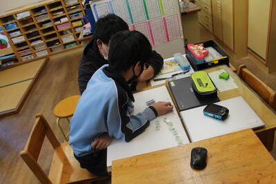 とは言わないで、じっとその子のやり方、試行錯誤を見守る担任。