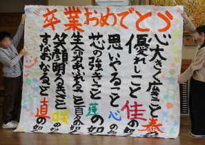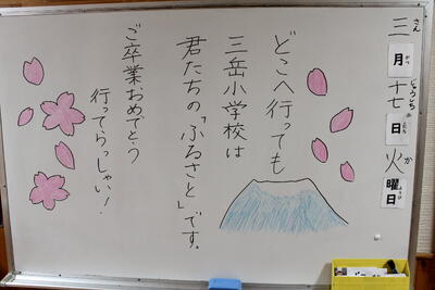 三岳小の校舎も卒業生をそっと見守ってくれています。