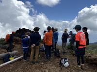 頂上で記憶の向こうにとふるさとを歌い、3.4年生が育てたひまわりを献花
